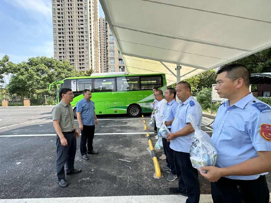 8月7日上午,北碚區(qū)道路運(yùn)輸事務(wù)中心主任張選澤一行到水土思源公租房首末公交站慰問(wèn)公交一線工作人員。東城公交龍盛經(jīng)營(yíng)部黨支部書記、經(jīng)理謝再秋陪同。