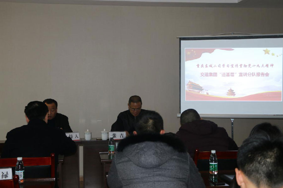 2017年12月12日下午,學(xué)習(xí)宣傳貫徹黨的十九大精神交運集團“進基層”宣講分隊報告會在東城二司舉行,公司班子成員、中層干部、全體黨員及員工代表共計32人參加報告會聆聽了宣講,報告會由重慶交運集團宣傳團成員、紀檢監(jiān)察室副主任張吉同志主講,東城二司黨支部書記舒渝同志主持。