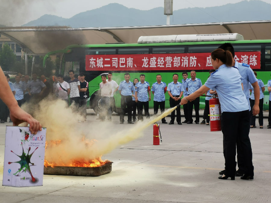 為提高安全防范意識(shí),增強(qiáng)自我保護(hù)能力,掌握對(duì)突發(fā)火災(zāi)的應(yīng)變、自救、逃生技能,切實(shí)落實(shí)好“安全生產(chǎn)月”的各項(xiàng)活動(dòng),6月25日,東城公交組織龍盛經(jīng)營部和巴南經(jīng)營部的龍興、水土、姜家接龍、木洞、一品等片區(qū),共計(jì)40余人,在我司輕紡城站場(chǎng)開展了消防應(yīng)急演練。