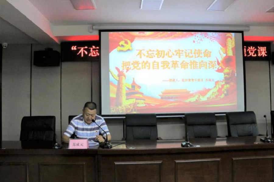 大會(huì)在莊嚴(yán)的國(guó)歌聲中拉開(kāi)序幕。隨后,由支部書(shū)記舒渝同志、宣傳委員胡忠同志、紀(jì)檢委員張衛(wèi)同志、組織兼青年委員蘇成元同志分別以《“不忘初心、牢記使命”主題教育》、《我是黨員我奉獻(xiàn)》、《以案為鑒,警鐘長(zhǎng)鳴》、《把黨的自我革命推向深入》為題,為參會(huì)人員上了一堂內(nèi)容豐富、主題鮮明的黨課。
