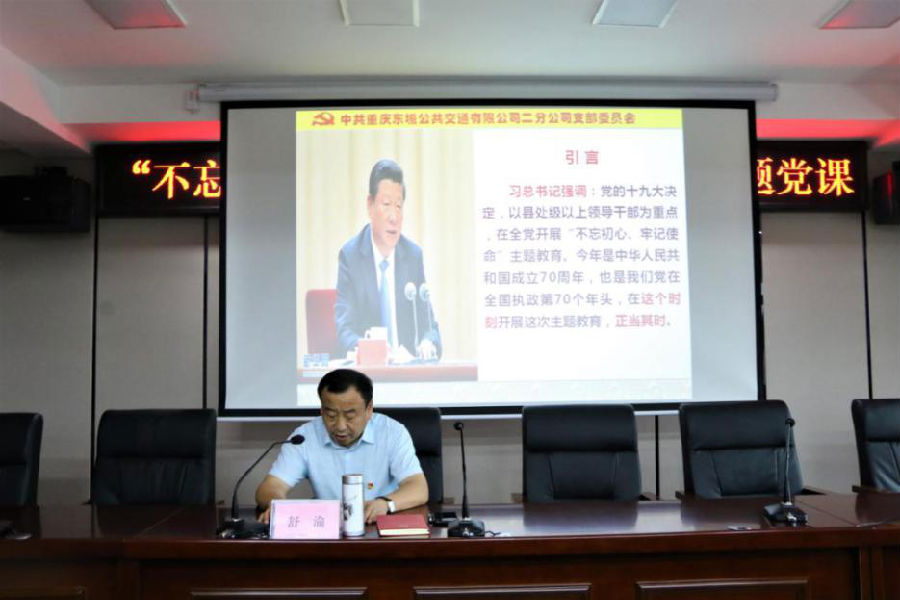 為高質(zhì)量推進(jìn)“不忘初心、牢記使命”主題教育,落實(shí)“將學(xué)習(xí)教育貫穿始終”的要求,2019年7月17日,重慶東城公交公司二分公司黨支部召開(kāi)“不忘初心、牢記使命”主題教育專(zhuān)題黨課,公司全體黨員、發(fā)展對(duì)象和積極分子共計(jì)30余人參加了會(huì)議。
