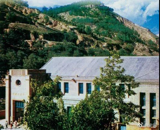 圖為中國(guó)共產(chǎn)黨第七次全國(guó)代表大會(huì)會(huì)址——延安楊家?guī)X中央大禮堂。