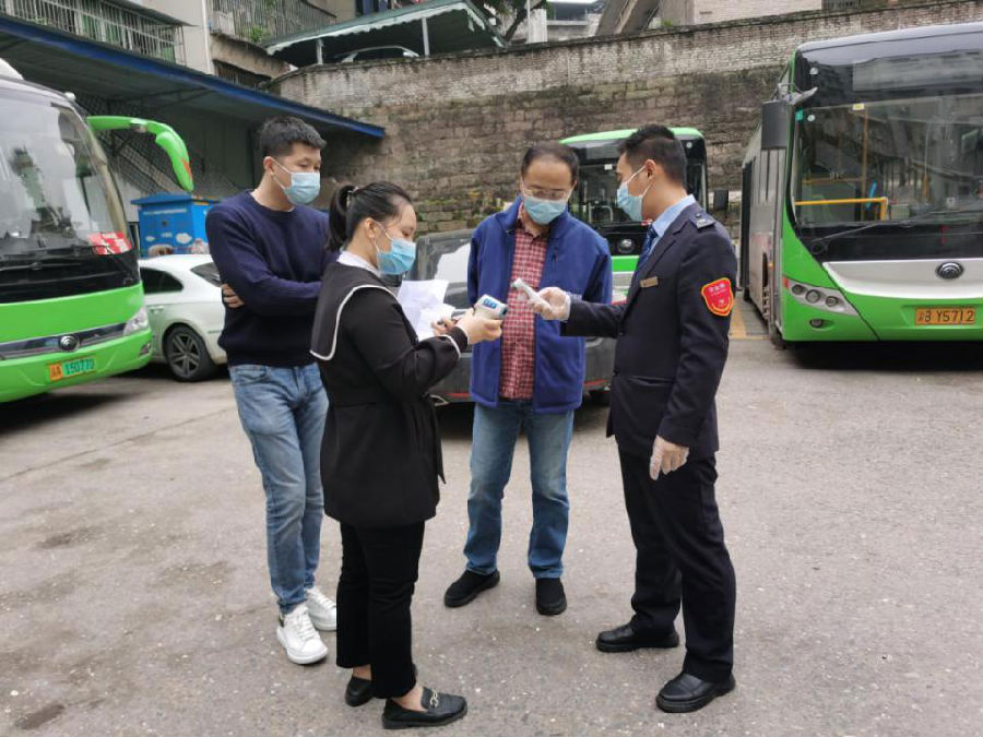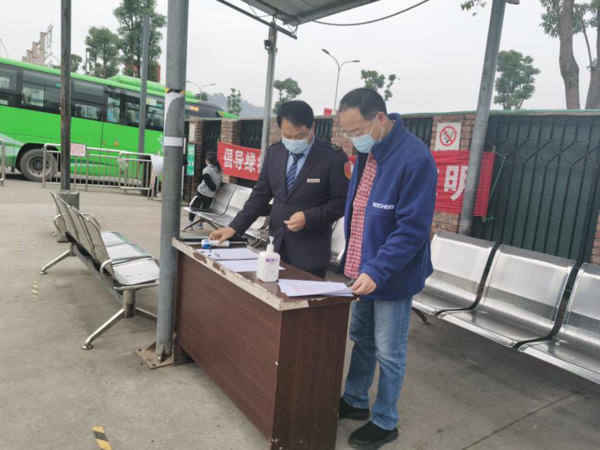 檢查組一行先后到巴南經(jīng)營(yíng)部、龍盛經(jīng)營(yíng)部、國(guó)際生物城公交樞紐站、木洞車站等地,對(duì)站場(chǎng)客流量、防疫消毒液、口罩、手套、體溫測(cè)量?jī)x等防疫物品配備情況和上崗員工核酸檢測(cè)、乘客體溫測(cè)量、噴洗消毒、信息登記等情況進(jìn)行了詳細(xì)查看和詢問。