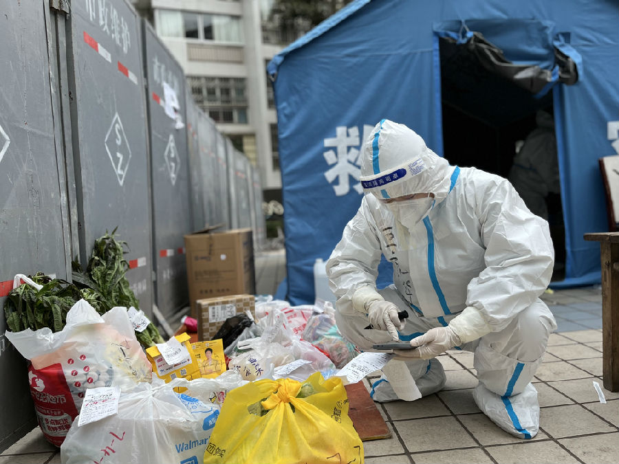 因所在區(qū)域被劃定為高風(fēng)險(xiǎn)區(qū)域陽(yáng)性病例確診單元樓后,東城公交龍盛經(jīng)營(yíng)部的黨員王虎華和重慶出版集團(tuán)的黨員敖瑞悅夫妻二人積極響應(yīng)號(hào)召,原本不同崗位、有著不同職責(zé)的二人攜手走上了疫情防控的戰(zhàn)場(chǎng)。按照社區(qū)安排,共同擔(dān)當(dāng)起了居民的“速遞員”,無(wú)論是幾十斤重的米面、水桶、還是小藥瓶等,他們都及時(shí)地將物資送到居民手中,守護(hù)了居民的“菜籃子”,幫助居民解決“最后一米”的問(wèn)題。