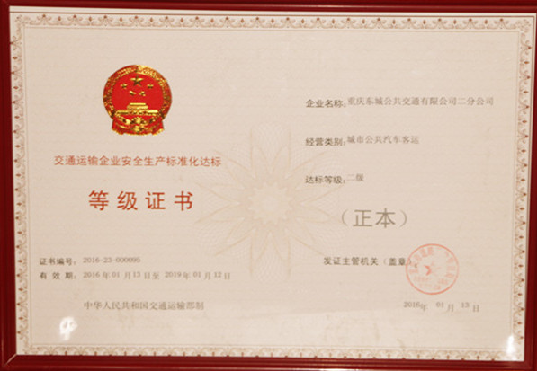 13、交通運(yùn)輸企業(yè)安全生產(chǎn)標(biāo)準(zhǔn)化二級(jí)達(dá)標(biāo)企業(yè)